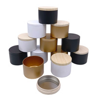 Luxury Seamless Empty 8oz Multi-color Candle Jars Tinplate Metal Containers with Wooden Pattern Lid Boxes